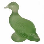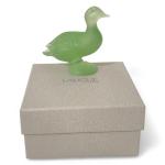 LALIQUE Canette Sujet en cristal teinté vert, signé H.: 9 cm (dans sa boite d'origine à la forme)