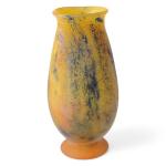 ART NOUVEAU Vase sur piédouche en verre marmoréen sur fond ocre H.: 26 cm