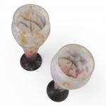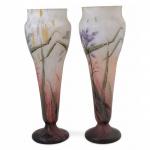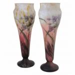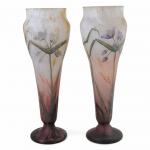 MADO (1925-1934) Paire de vases en verre marmoréen à décor peint d'iris, signés H.: 37.5 cm (infime égrenure au col) La maison MADO, installée à Nancy, était dirigée par Paul Daum