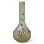 MONTJOYE Vase à col tubulaire en verre givré à décor émaillé de fleurs, signé au-dessous H.: 29.7 cm