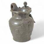 Charles Clément PERRON (1893-1958) Pichet en étain à décor d'une jeune femme agrippée au pourtour, signé Epoque Art Nouveau H.: 19.5 cm