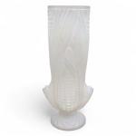 ETLING Vase en verre opalescent sur piédouche agrémenté de deux petites anses, signé H.: 29.5 cm
