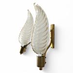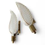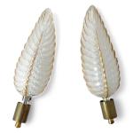 EZAN France Paire d'appliques constituées d'une feuilles en verre et rehauts d'or, la monture en laiton, signées Epoque Art Déco H.: 34 cm