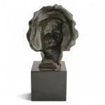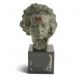 Jules JOUANT (1863-1938) Beethoven Tête en bronze patiné, signé et marque de fondeur F. Barbedienne, sur un socle en marbre Années 1930 H. totale: 14 cm