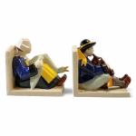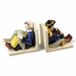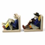 attribué à Georges ROBIN (1904-1928) pour HB à Quimper Les bretons Paire de serre livres en faïence 17.5 x 19 x 11 cm