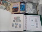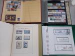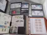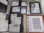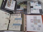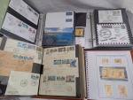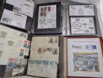 Terres Australes et Antarctiques Françaises : collection avancée de timbres (en grande majorité neufs), blocs et carnets ainsi que de très nombreuses lettres dans plusieurs albums et classeurs, belle présentation et très belle qualité générale, à étudier. A noter des timbres d'autres territoires Antarctiques (Australien, Argentin, Britannique). On joint deux classeurs de doubles ou timbres en attente de classement, avec également quelques timbres modernes des TOM, Saint-Pierre et Miquelon et Monaco.