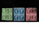 France, lot de 3 blocs de quatre timbres Empire non dentelés oblitérés, N°12, 14B et...