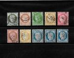 France n°50, 51, 53, 55, 57, 58, 59, 60A, 60B et 60C, Cérès dentelé, 10 timbres oblitérés, tous TB, cote totale 145