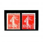 France n°138c écarlate + n°138 timbre normal, neufs avec légère trace de charnière, TB, cote 230