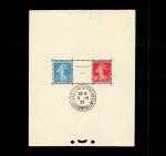 France, bloc n°2a neuf sans charnière avec cachet témoin de l'exposition de Strasbourg 1927, légères marques sur la gomme hors timbres, timbres TB, cote 2000