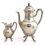 SERVICE A THE CAFE en argent, reposant sur quatre pieds en enroulements, à décor de guirlande florale, feuillage et filets, comprenant une cafetière couverte, une théière couverte, un sucrier couvert et un pot à lait
