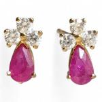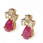 Paire de PUCES D'OREILLES en or jaune, rubis et diamants Poids: 0.5 g