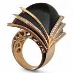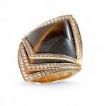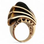 BAGUE dôme en or jaune quartz oeil de tigre et 6 lignes de petits diamants Poids: 30 g TDD 56
