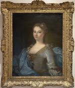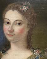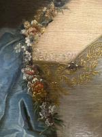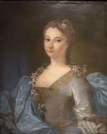 ECOLE FRANCAISE du XVIIIème Portrait de dame à la robe bleue Huile sur toile 73 x 60 cm (restaurations, rentoilage)