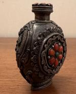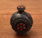 CHINE Flacon tabatière en argent et cabochons de corail H.: 7.5 cm