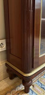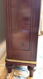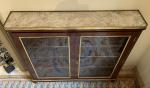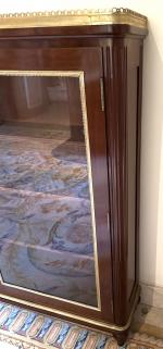 BIBLIOTHEQUE BASSE formant VITRINE en acajou et placage d'acajou, ouvrant à deux portes vitrées en façade, les montants cannelés et rudentés, estampillée J. CANABAS et poinçon de jurande JME, dessus de marbre à galerie