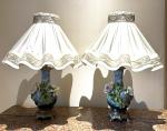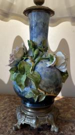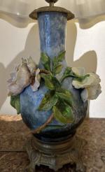 MONTIGNY SUR LOING Paire de vases en barbotine, montés en lampe H. (vase): 27 cm (lampe): 37.5 cm
