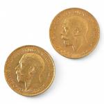 Deux PIECES en or, Souverain Georges V, 1912 et 1913 Lot conservé en banque, vendu sur désignation, délivrance sur rendez-vous