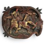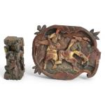 CHINE Deux éléments en bois sculpté figurant des personnages H.: 11.5 et 16.5 cm