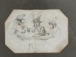 ECOLE FRANCAISE Scène de cabaret Dessin annoté "d'après nature" en bas à droite 12.5 x 18 cm à vue (mouillures)