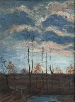 ECOLE FRANCAISE vers 1900 Paysage arboré Huile sur carton 31.5 x 23 cm à vue