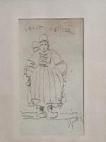 ECOLE FRANCAISE du XXème Salut Olivier Encre signée en bas à droite, titrée en haut 19.2 x 10.7 cm à vue (piqûres)