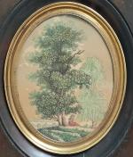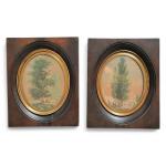 Paire de MINIATURES à vue ovale représentant chacune un paysage 14.5 x 11 cm à vue (frottements, mouillures)
