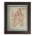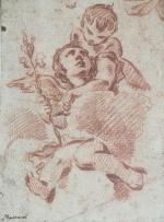 attribué à Pierre PARROCEL (1670-1739) Deux figures plafonnantes Sanguine, annoté à la plume " parrocel " en bas à droite 16,7 x 12 cm (taches) Expert: cabinet de Bayser