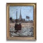 Gaëtan DUMAS (1879-1950) Bordeaux, les quais Huile sur carton toilé signée en bas à droite 35 x 27 cm