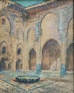 Evan DE LAPEYRIERE (1907-1994) Scène orientaliste, le patio Aquarelle signée en bas à gauche 40 x 32 cm à vue
