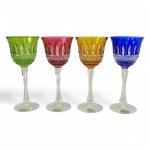 Suite de quatre VERRES A VIN du Rhin en cristal de couleurs, pastille "Cristal prestige CCL" sur la base H.: 21 cm