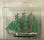 MAQUETTE de trois mâts allemand "A.V. HUMBOLDT" en bois, sous verre H.: 62 cm l.: 78 cm P.: 23 cm hors tout