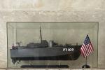 MAQUETTE de patrouilleur américain en bois et métal peints, sous verre H.: 36.5 cm l.: 74 cm P.: 26 cm hors tout