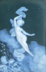 Auguste RIFFATERRE (1868-1935) à Limoges Libellule Plaque en porcelaine à décor bleu blanc et or, signée, enchâssée...