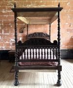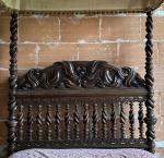 Important LIT en bois indigène sculpté, mouluré et tourné, à colonnes torses, le ciel de lit postérieur