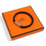 HERMES BRACELET homme cuir et métal argenté (dans sa pochette et son sac)