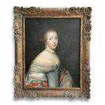 ECOLE FRANCAISE début XVIIIème Portrait de dame à la parure de perles Huile sur toile 67.5 x 55.5 cm (légers accidents)