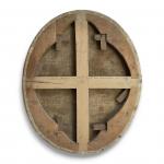 Huile sur toile ovale avec armoiries sous couronne de marquis en haut à droite