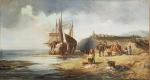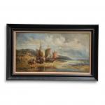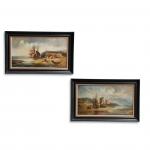 ECOLE FRANCAISE du XIXème Le déchargement des bateaux Paire d'huiles sur toile 35.5 x 65 cm (rentoilage)