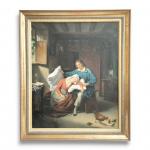 ECOLE HOLLANDAISE du XIXème Scène familiale dans un intérieur Huile sur toile 73.5 x 60 cm (restaurations, rentoilage)