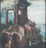 ECOLE FRANCAISE du XIXème Caprice architectural Huile sur panneau 18.3 x 16.5 cm