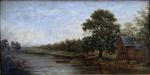 ECOLE FRANCAISE du XIXème Paysage fluvial Huile sur toile 20 x 40 cm à vue