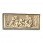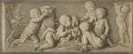 ECOLE FRANCAISE du XIXème Frise représentant des enfants jouant avec des grappes de raisin Huile sur toile en grisaille 75.5 x 117 cm