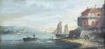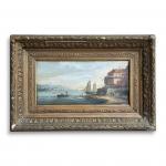 ECOLE ITALIENNE du XIXème Paysage méditerranéen Huile sur panneau avec traces de signature en bas à droite 17.5 x 36 cm (petits manques)