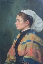 Félix G. BERNE-BELLECOUR (?-1905) Portrait de dame, 1893. Huile sur panneau signée et datée avec envoi...