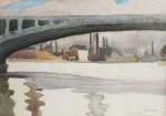 Maurice LE SCOUÉZEC (1881-1940) Suresnes, le pont, 1919. Aquarelle signée et située avec cachet de l'atelier...
