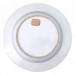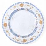 CHINE Plat rond en porcelaine à décor bleu et or XVIIIème D.: 32.2 cm (légères égrenures)