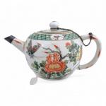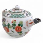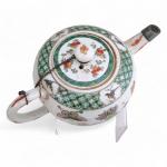 CHINE Compagnie des Indes Verseuse couverte en porcelaine à décor famille verte Epoque Kangxi H.: 11.5 cm (l'anse recollée, petit éclat sous le couvercle)