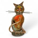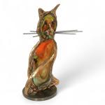 Yves LOHE (né en 1947) Chat Bronze et verre, signé H.: 47 cm (les moustaches à refixer)