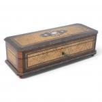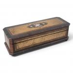 COFFRET A BIJOUX en bois de placage et marqueterie Fin XIXème H.: 10 cm l.: 32 cm P.: 12.5 cm